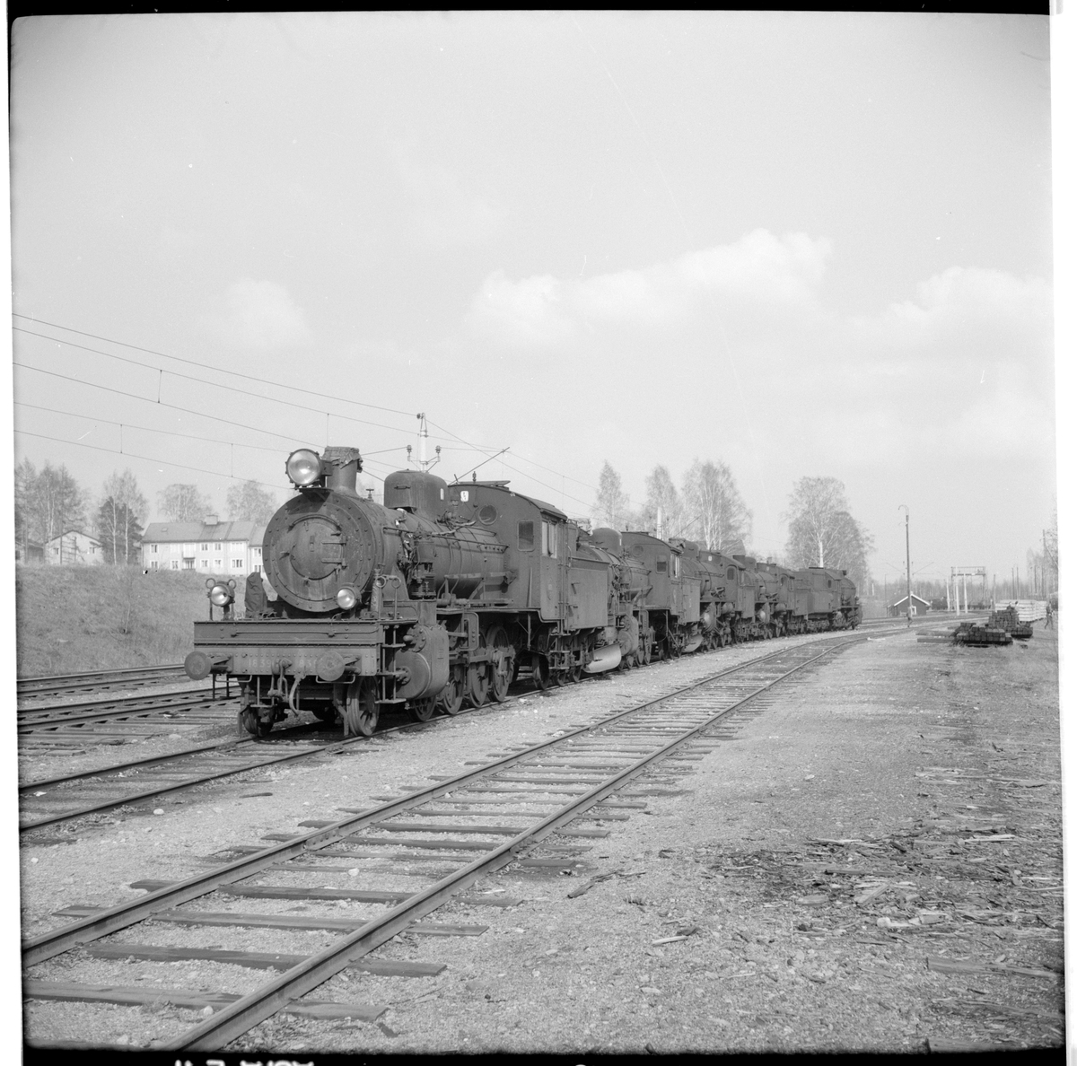 Statens Järnvägar, SJ G8 1839 med fyra ånglok på spåret bakom.
