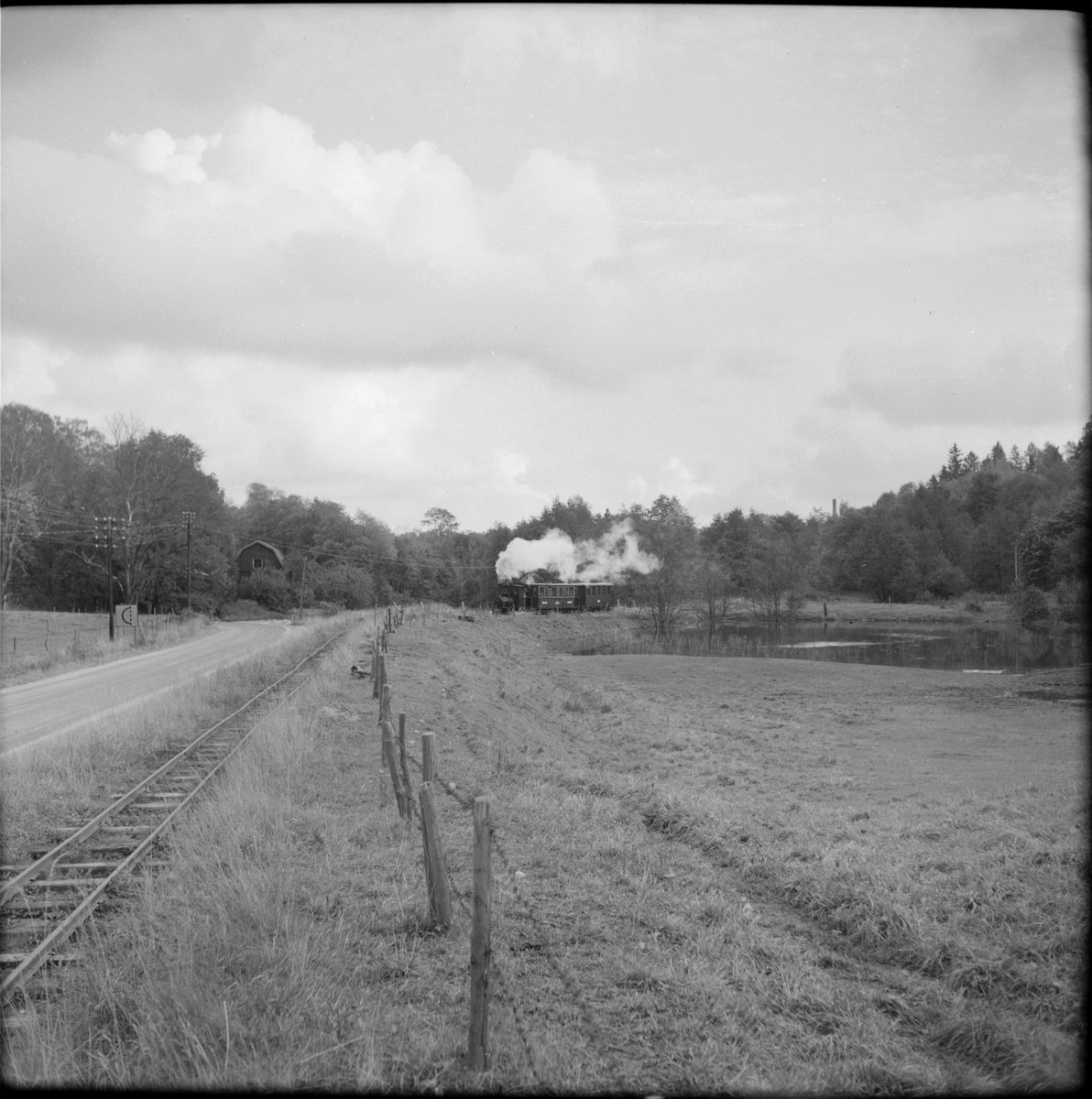 Museijärnvägen Östra Södermanlands Järnväg, ÖSlJ. ÖSlJ ånglok med personvagn från Jönköping - Gripenbergs Järnväg, JGJ och Munkedals Järnväg, MJ.