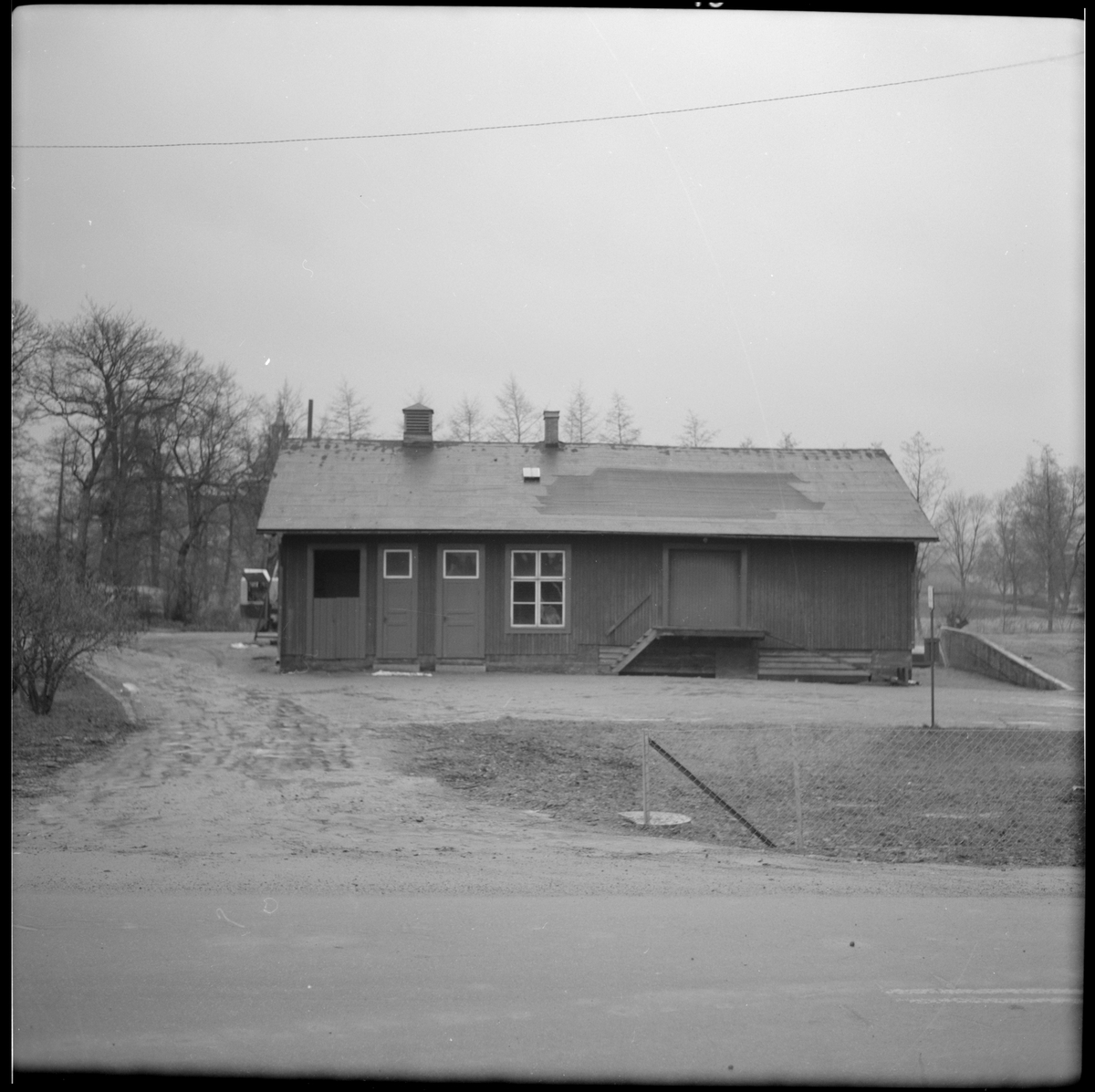 Husbyggnad vid bangården i Mariefred som användes av Museijärnväg Östra Södermanlands Järnväg, ÖSlJ.