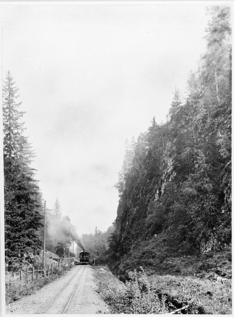 Titel: Ånglok i sprickdalen Ingerydsdalen mellan stationerna Bunn och Brötjemark mot sydväst.