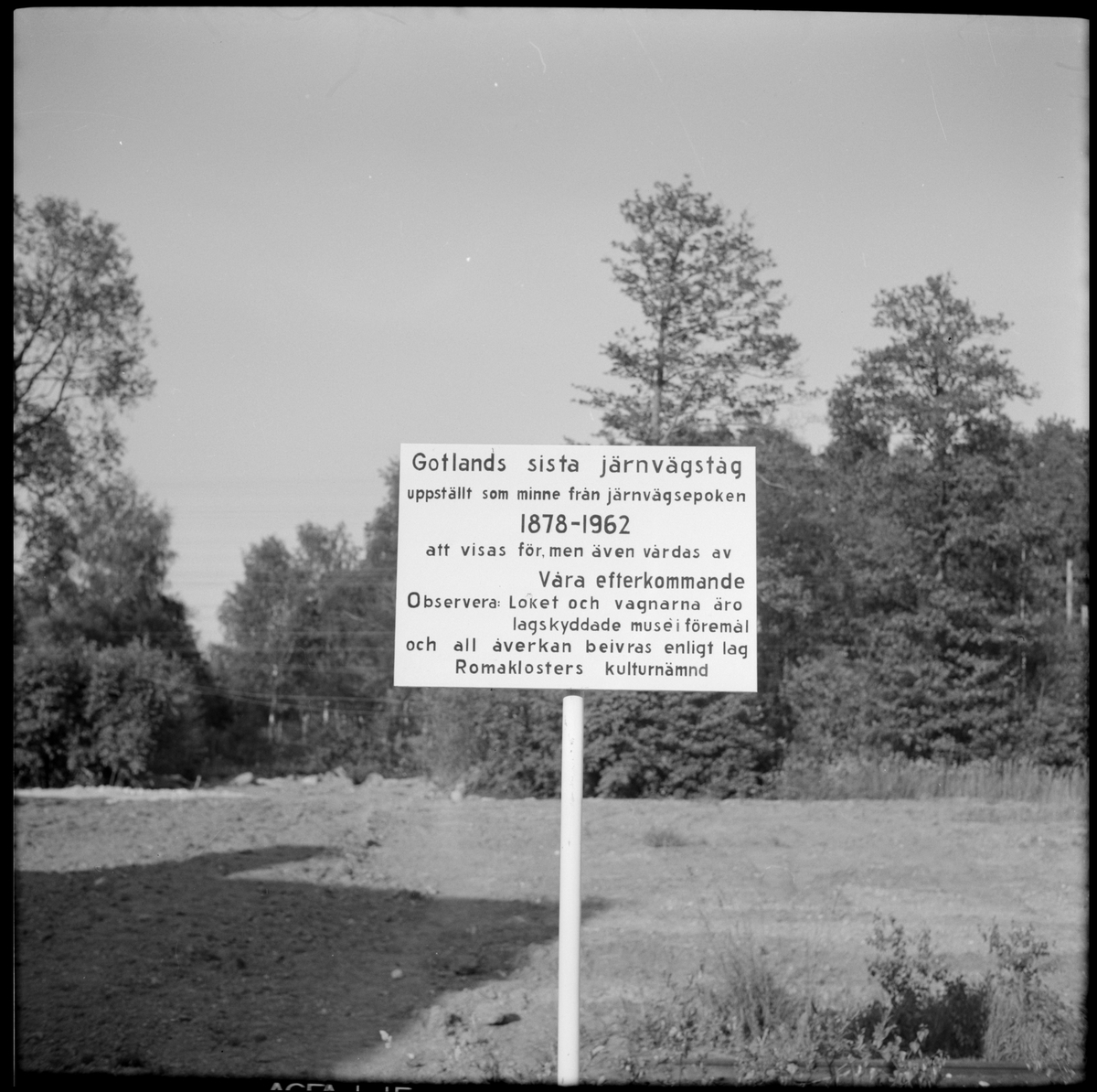 Informationsskylt för Gotlands museijärnväg "Gotlandståget".