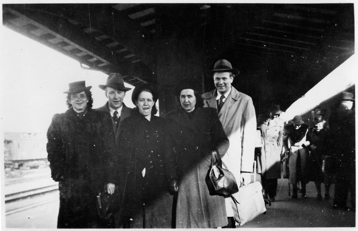 Titel: Servitör Erik Ljung tillsammans med hovmästare och kökspersonal från en Restaurangvagn.