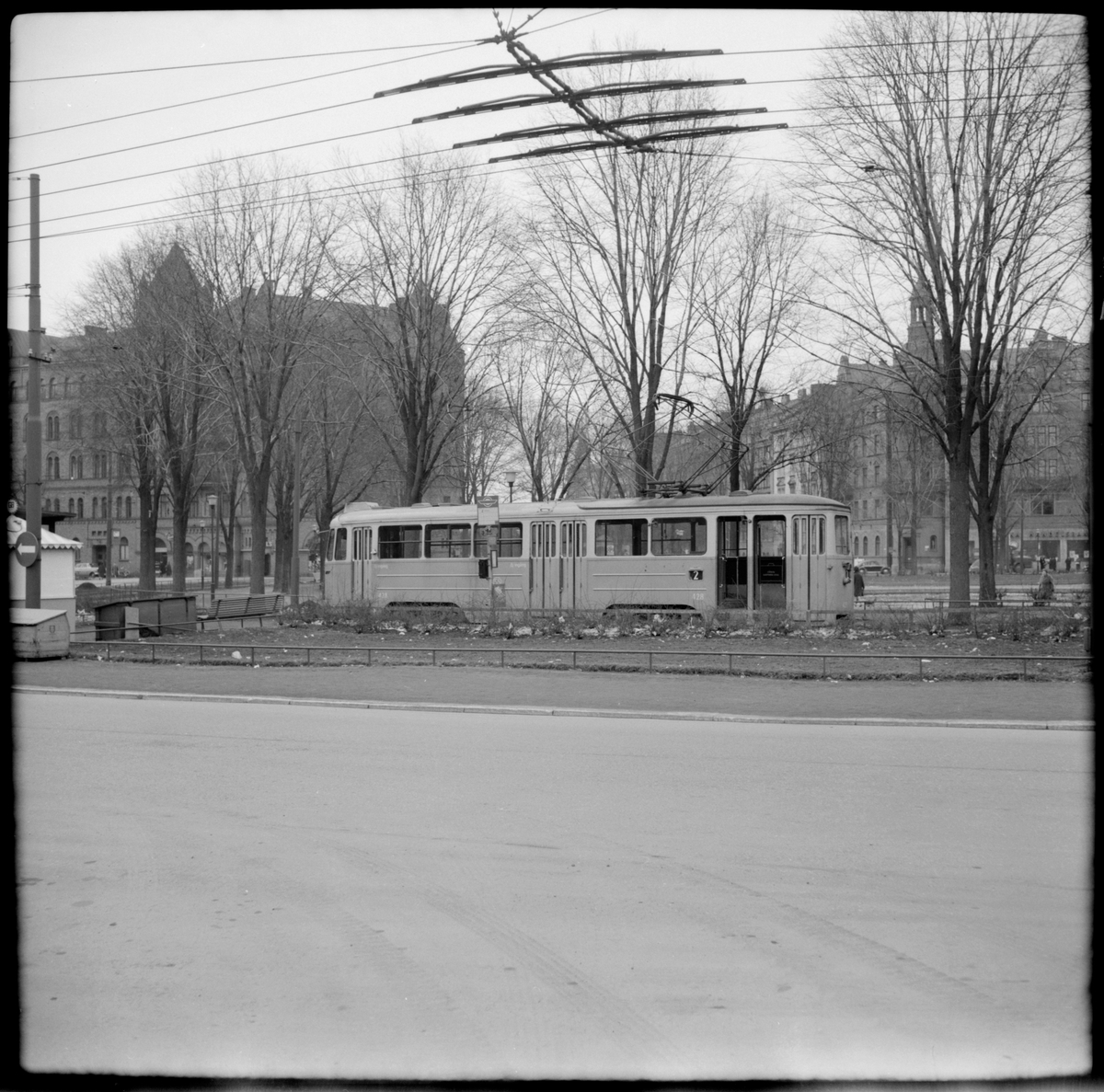 Aktiebolaget Stockholms Spårvägar, SS A25 428 "mustang" linje 2 Karlaplan - Fredhäll vid hållplats Karlaplan.