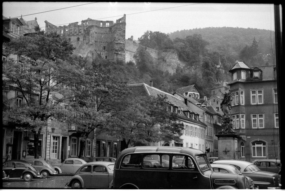 Översikt på del av slottsruin i Heidelberg, beläget på Schlossberg söder om Heidelberg i Tyskland.