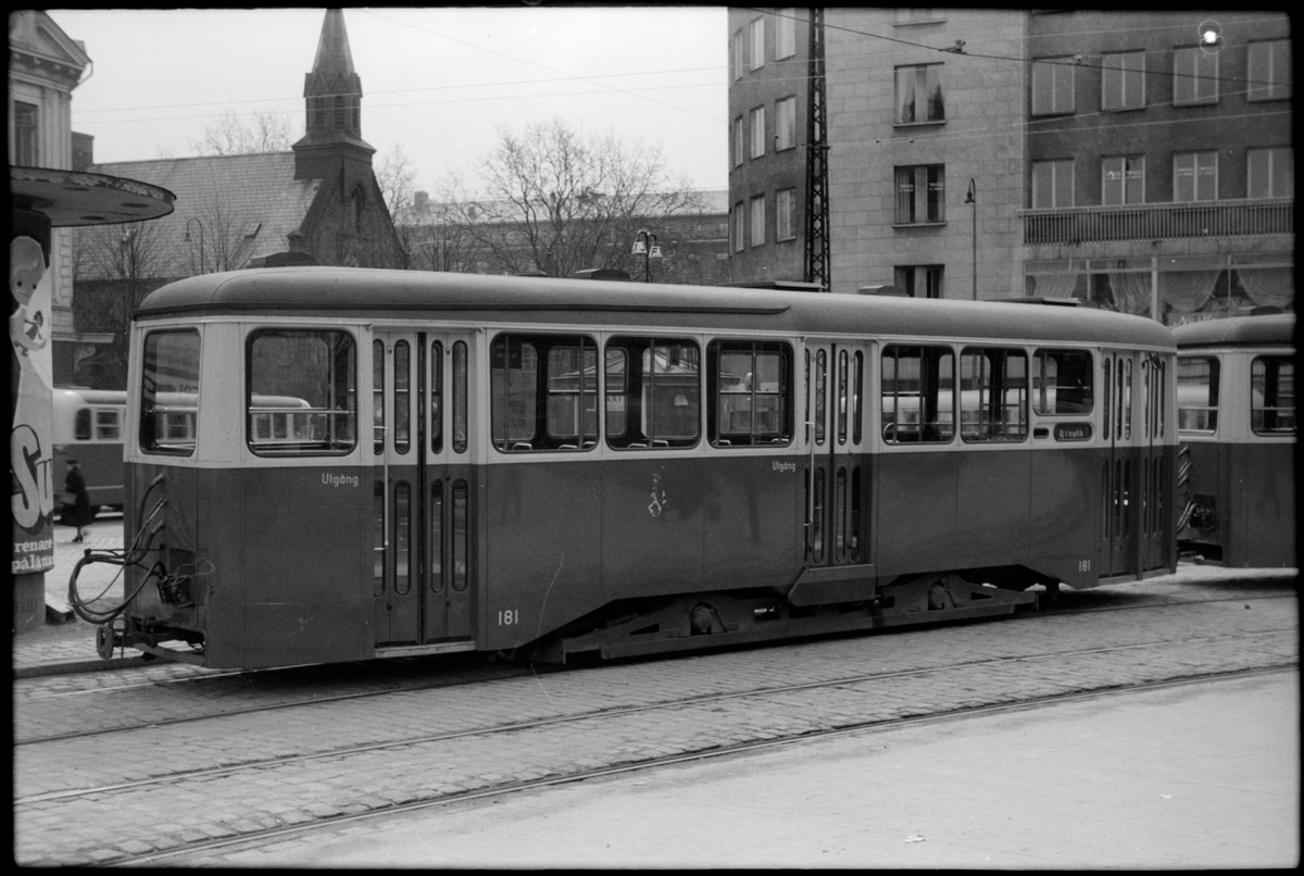 Malmö Stads Spårvägar, MSS T-7 181. Bilden är tagen från Gustav Adolfs torg.