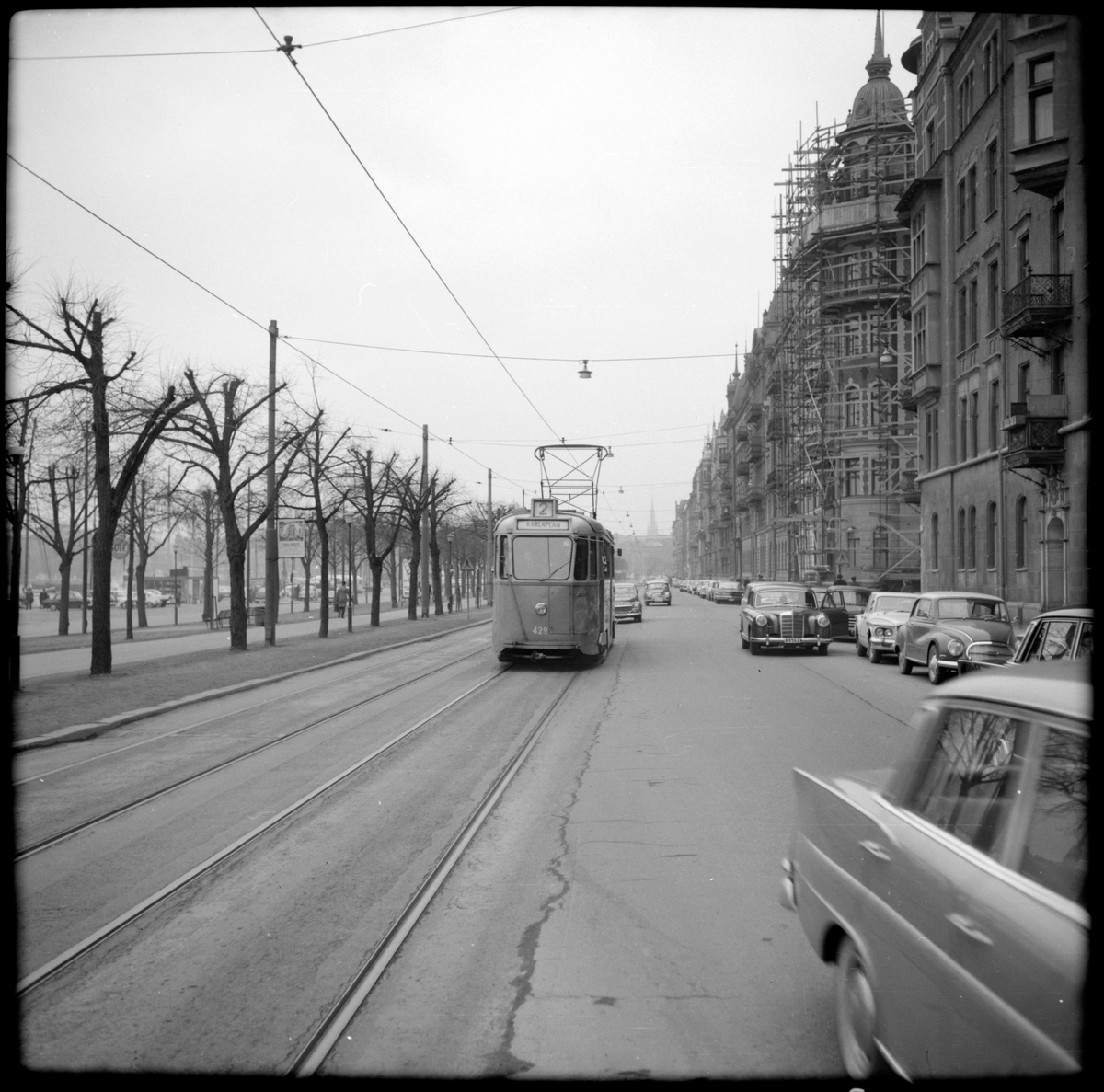 Aktiebolaget Stockholms Spårvägar, SS A25 429 "mustang" linje 2 Fredhäll - Karlaplan i trafik på Strandvägen.