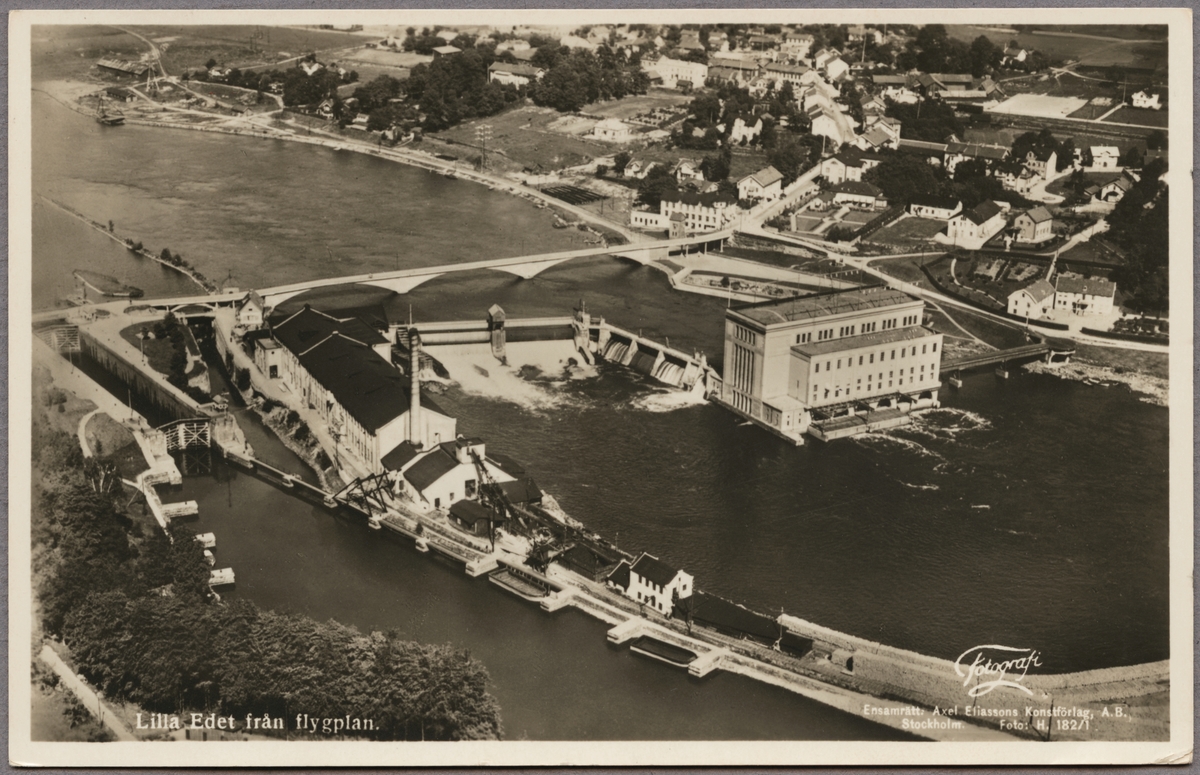 Titel: Flygfoto över kraftverk i Lilla Edet.