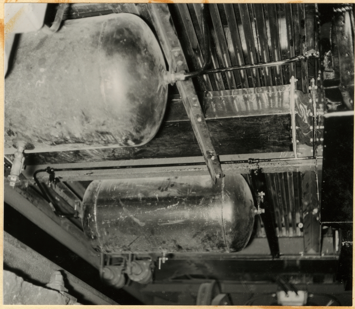 Underrede, luftbehållare till värme- och ventilationsutrustning på Trafikaktiebolaget Grängesberg - Oxelösunds Järnvägar, TGOJ Yoa 104 motorvagnståg.