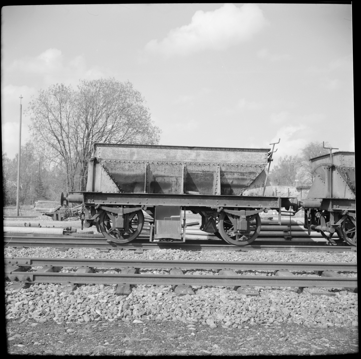 Öppen godsvagn med tömning på sidan vid Zinkgruvan.