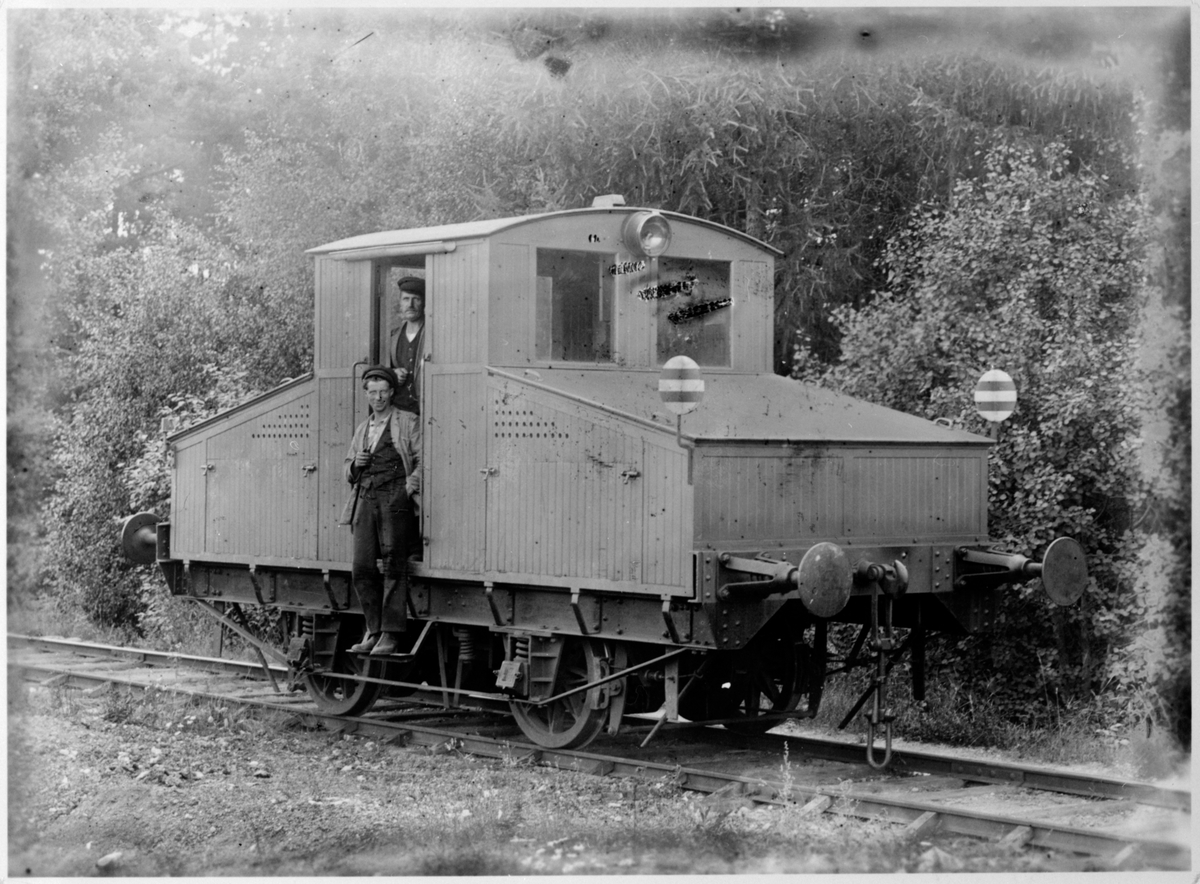 Titel: Okänd lokomotor med träkorg på normalspår.