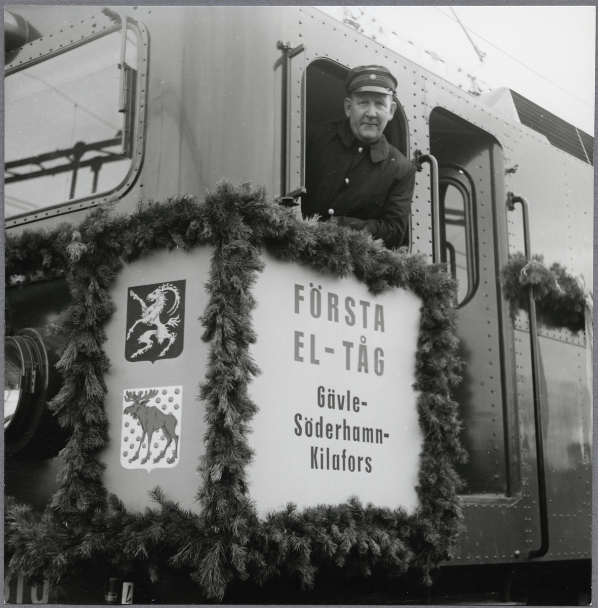 Första eltåget någonstans på linjen Gävle - Söderhamn - Kilafors. Statens Järnvägar, SJ Da 810.