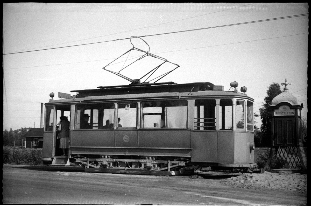 Sundsvalls Spårvägs Aktiebolag, SSA spårvagn 8 vid Kubikenborg. Linjen som trafikeras är Kubikenborg - Sundsvall - Ortviken.