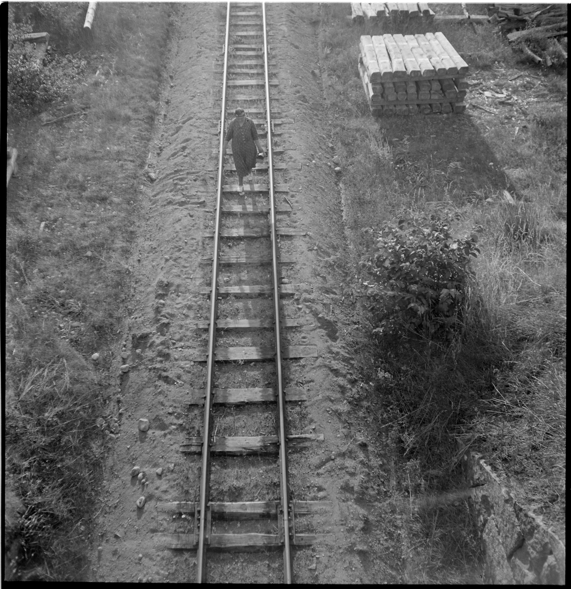 Kvinna vid järnvägsspår.