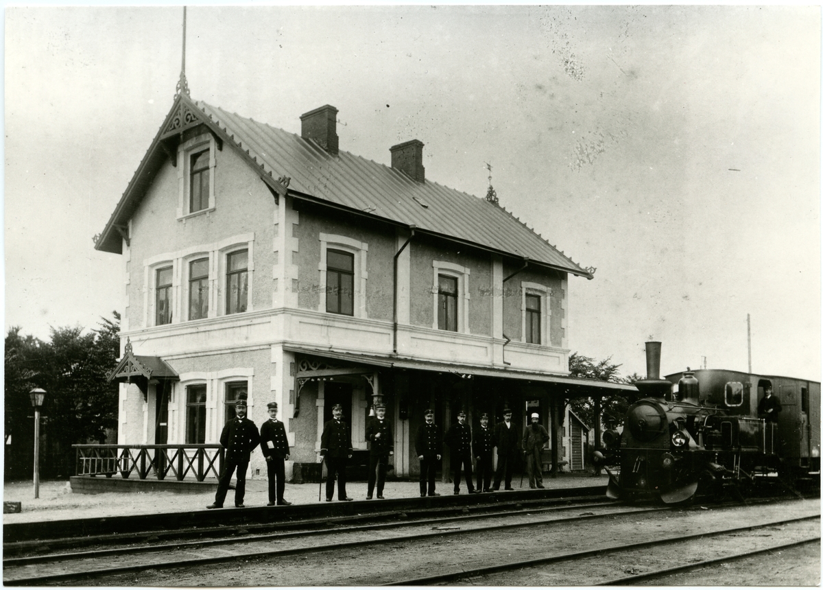 Fr.v. Stk. Jöns Olsson, notisbud Gustav Holmkvist, sts. Ludvig Holmberg, sts. Julius von Platen, stk. Olof Nilsson, Nils Sjöholm o Håkan Persson, vagnputsare G. Roslund, f.d. stk. Anders Roskvist.