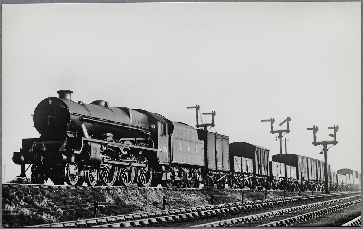 Godståg nära Liverpool, London Midland Scottish Railway, L.M.S. 5XP 5635 "Tobago".