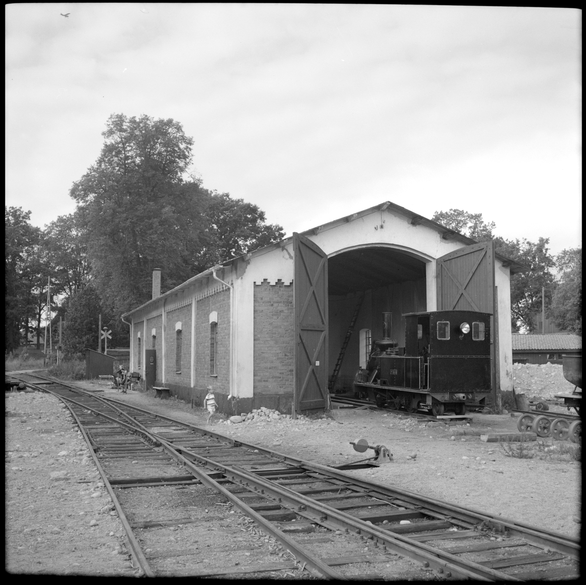 Stafsjö Järnväg lok 2 "Virå" vid lokstallet i Mariefred som användes av Museijärnväg Östra Södermanlands Järnväg, ÖSlJ.