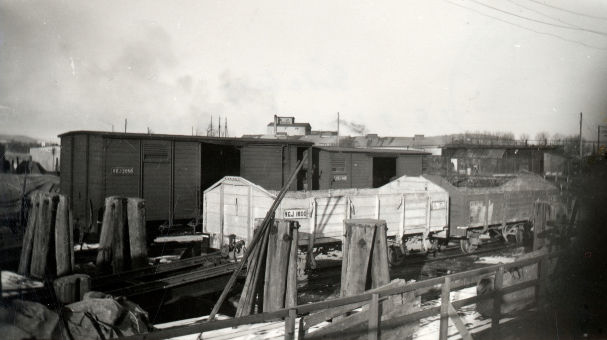 VGJ, Västergötland-Göteborg Järnvägar färjeläge för vagnpråmarna där Mölndalsån, med Säveån från Mjörn, flyter ut i Göta älv vid gasverket på Hultmansholme.