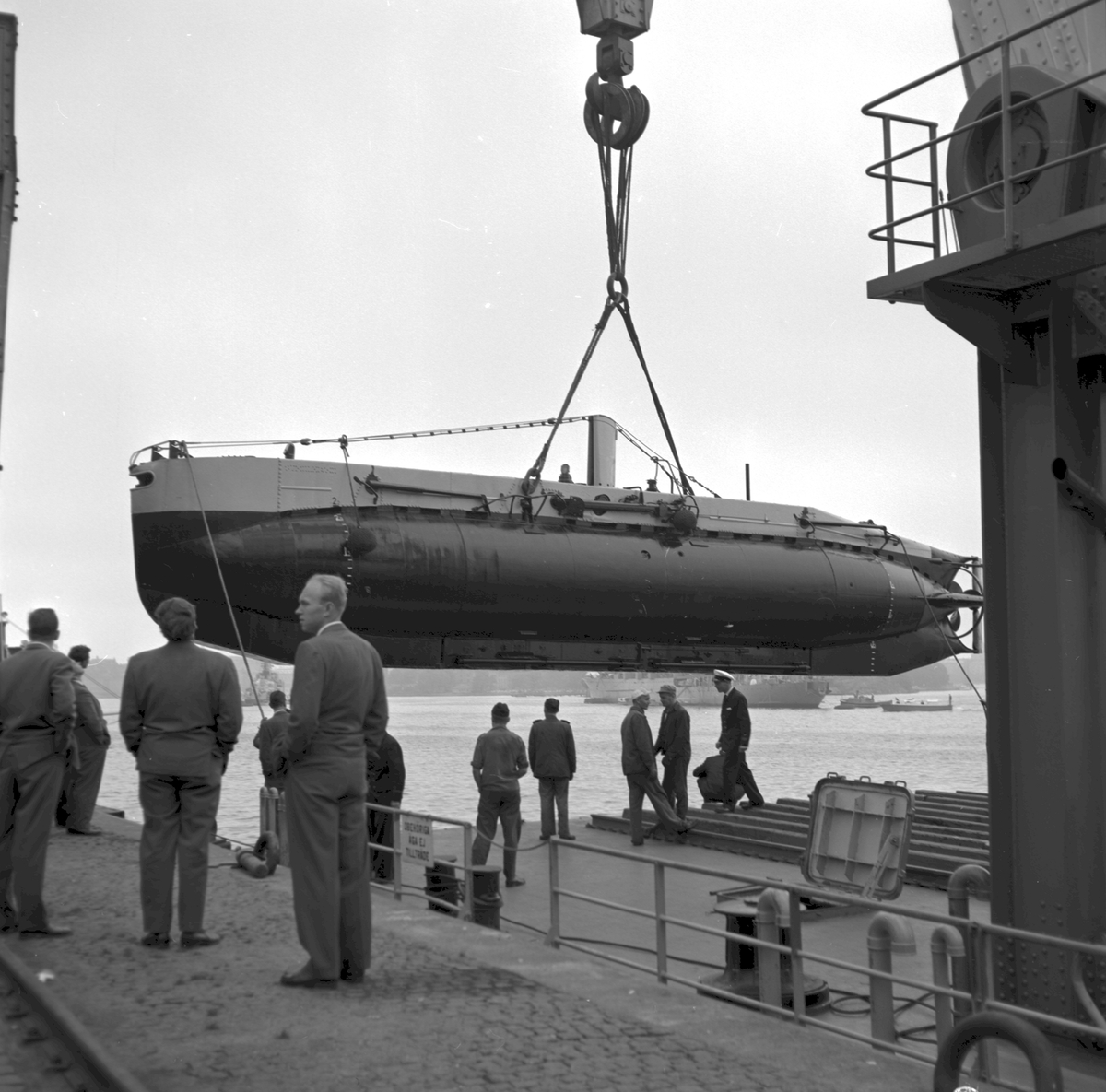 Titel: U-båten Spiggen transporteras till järnväg