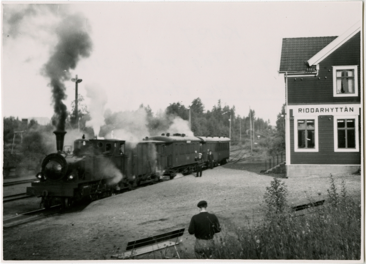 Köping Uttersbergs Riddarhyttans Järnväg, KURJ Lok 9 på avgång från Riddarhytte station