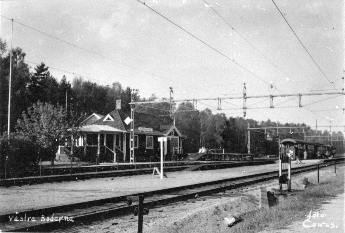 Stationen anlades 1908. 1917 flyttades stationsbyggnaden vid Västra Bodarne till nuvarande plats. Mekanisk växelförregling med kontrollås.