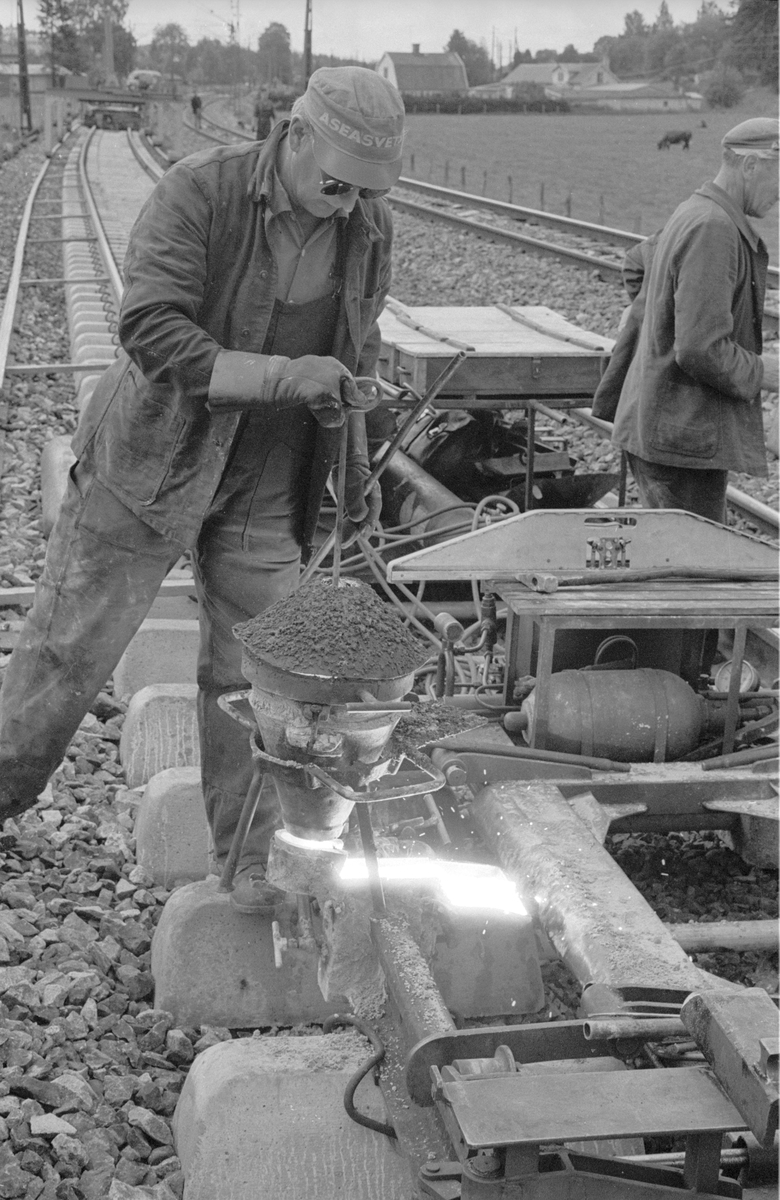 Titel: Spårrevision. Räls och slipersbyte (betongslipers). Linjen Rotebro, R - Zlpv. Svetsar skarv