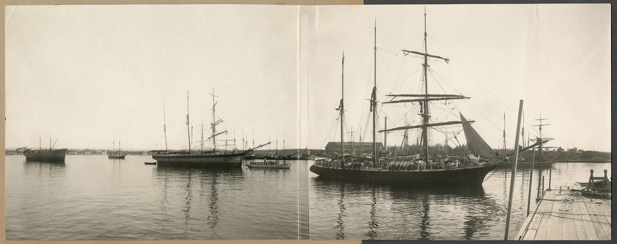 Tremastade skeppet "Rolf" ligger ankrat i Inre fjärden. I bakgrunden syns Statens Järnvägars slipersfabrik, Piteå.
