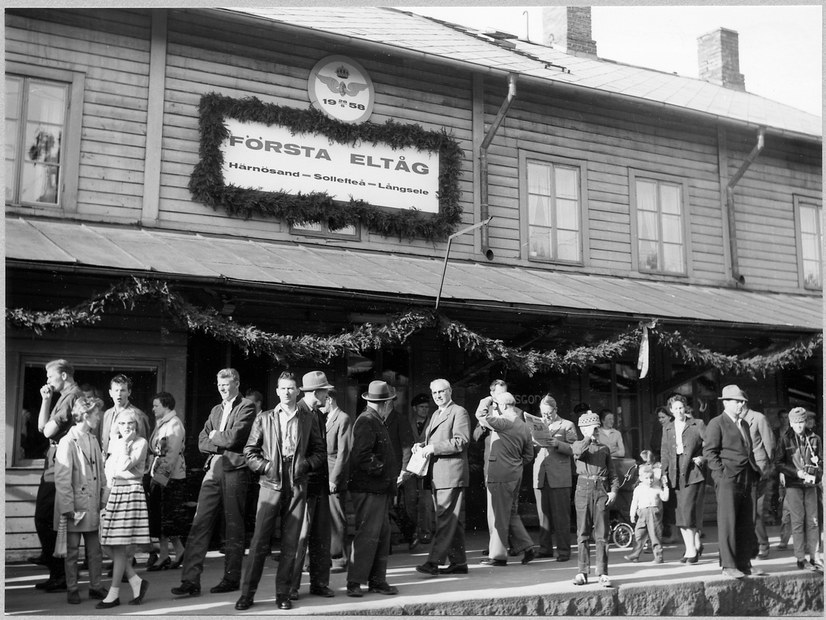 Folksamling vid Sollefetå station i samband med invigningen av eldriften på sträckan Härnösand - Sollefteå - Långsele.