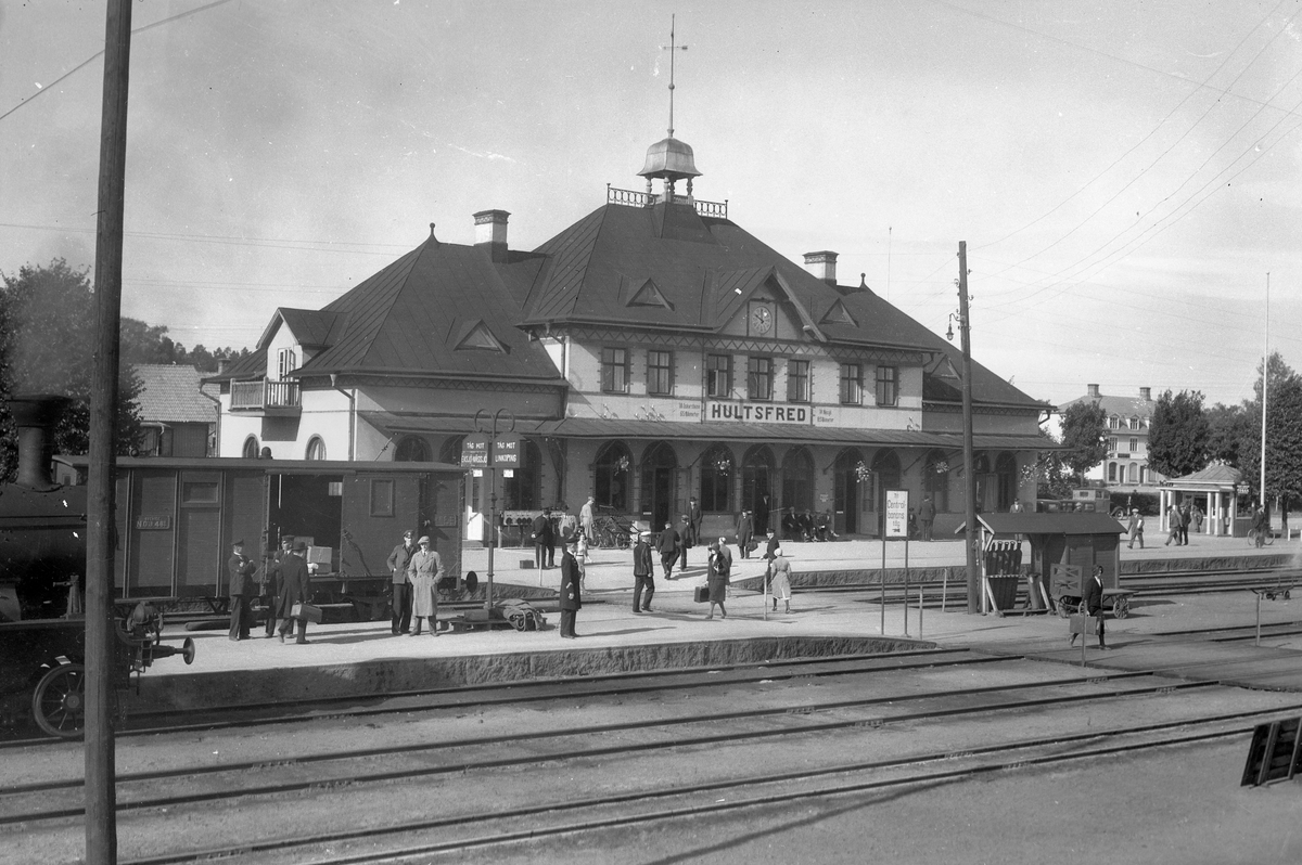 Station, anlagd 1874. Stationshuset, två våningar i sten, har under årens lopp tillbyggts, bl a för postkontor, och 1923 anlades ställverk till den mekaniska växelförreglingen. Gamla stationen envånings i trä. Ny stationsbyggnad 1902.