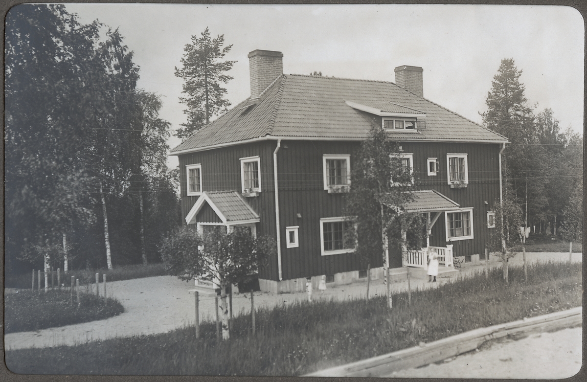 Titel: Kvinna med barn utan för det av SJ uppförda bostadshuset som är tjänstebostad för de anställda.