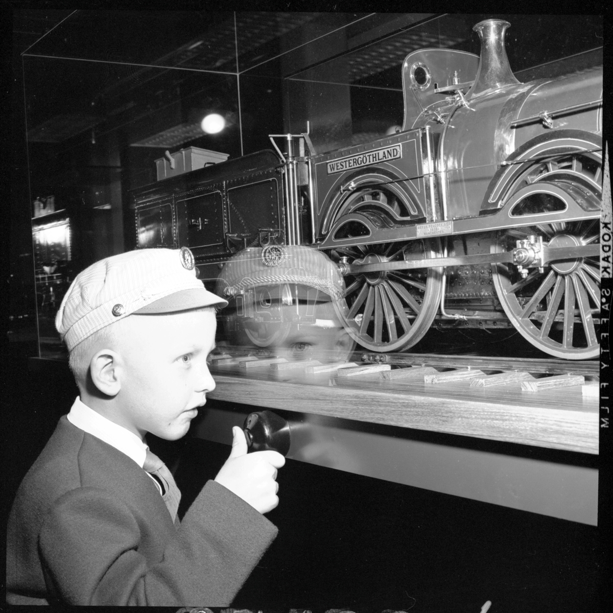 Järnvägsmuseets modellhall, Centralstationen. Modell av loket Wästra Stambanan WSB "Westergötland", sedemera Statens Järnvägar SJ B 1 "Westergötland", byggt 1858 av Beyer, Peacock & Co i Manchester, England.