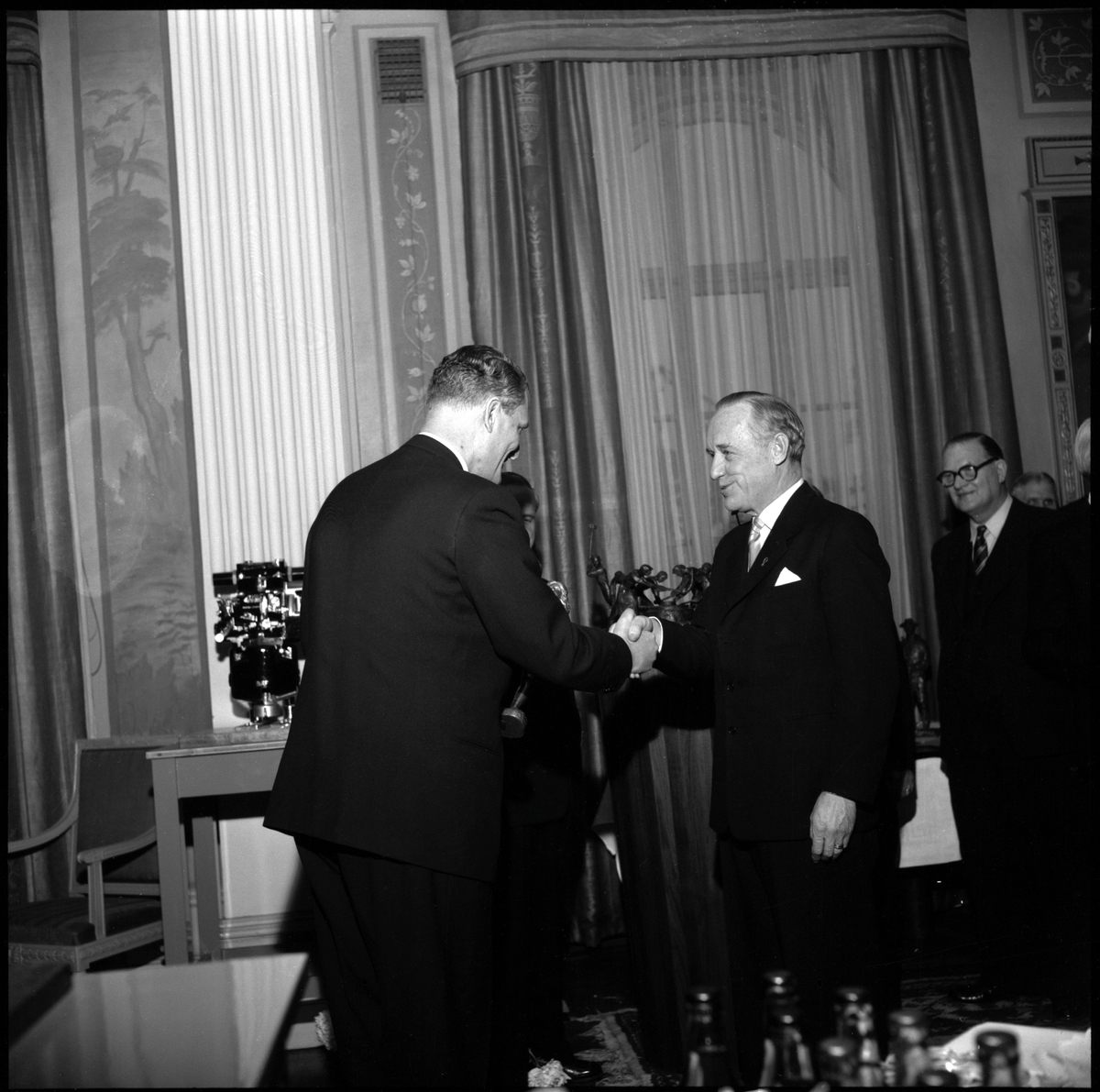 Titel: Generaldirektör Erik Upmark tar emot gåvor från Stockholms Saltsjöns järnvägar SSnJ, NOHAB, St. Kopparberg, Kockums, LME.