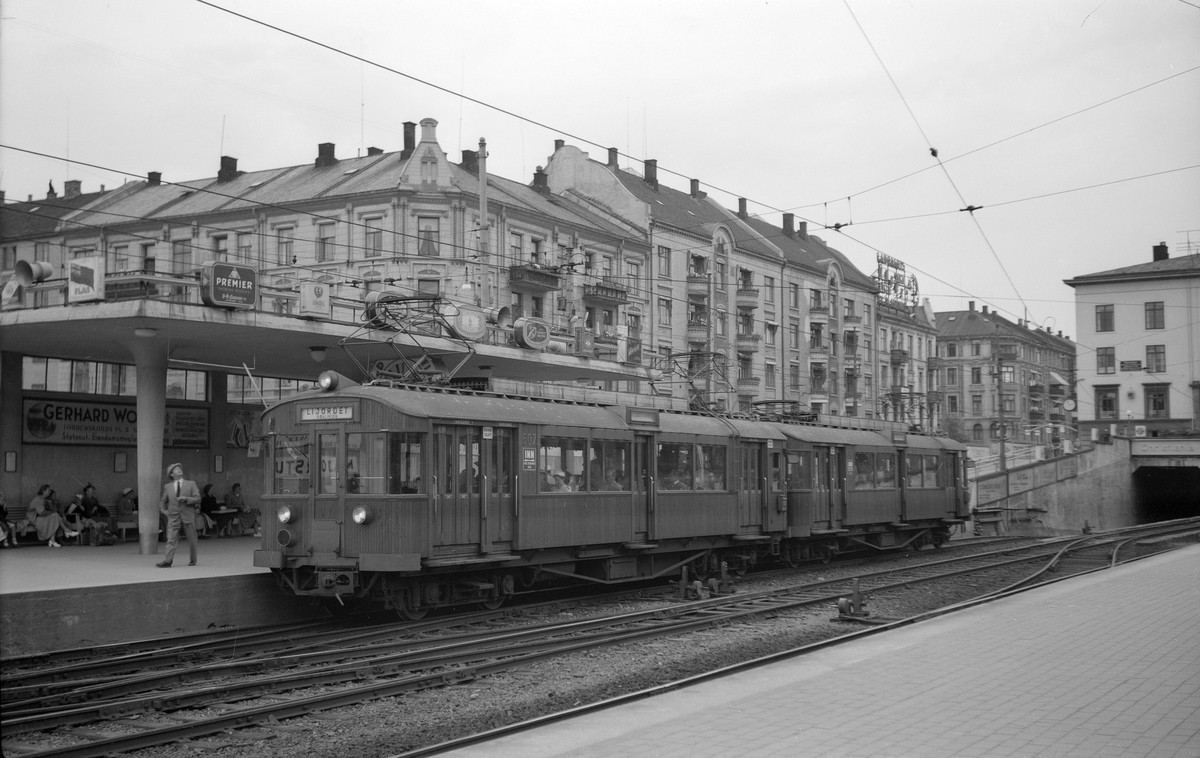 Holmenkolbanen station på Majorstuen. HKB 607/608 byggda av Skabo och Nebb 1951.