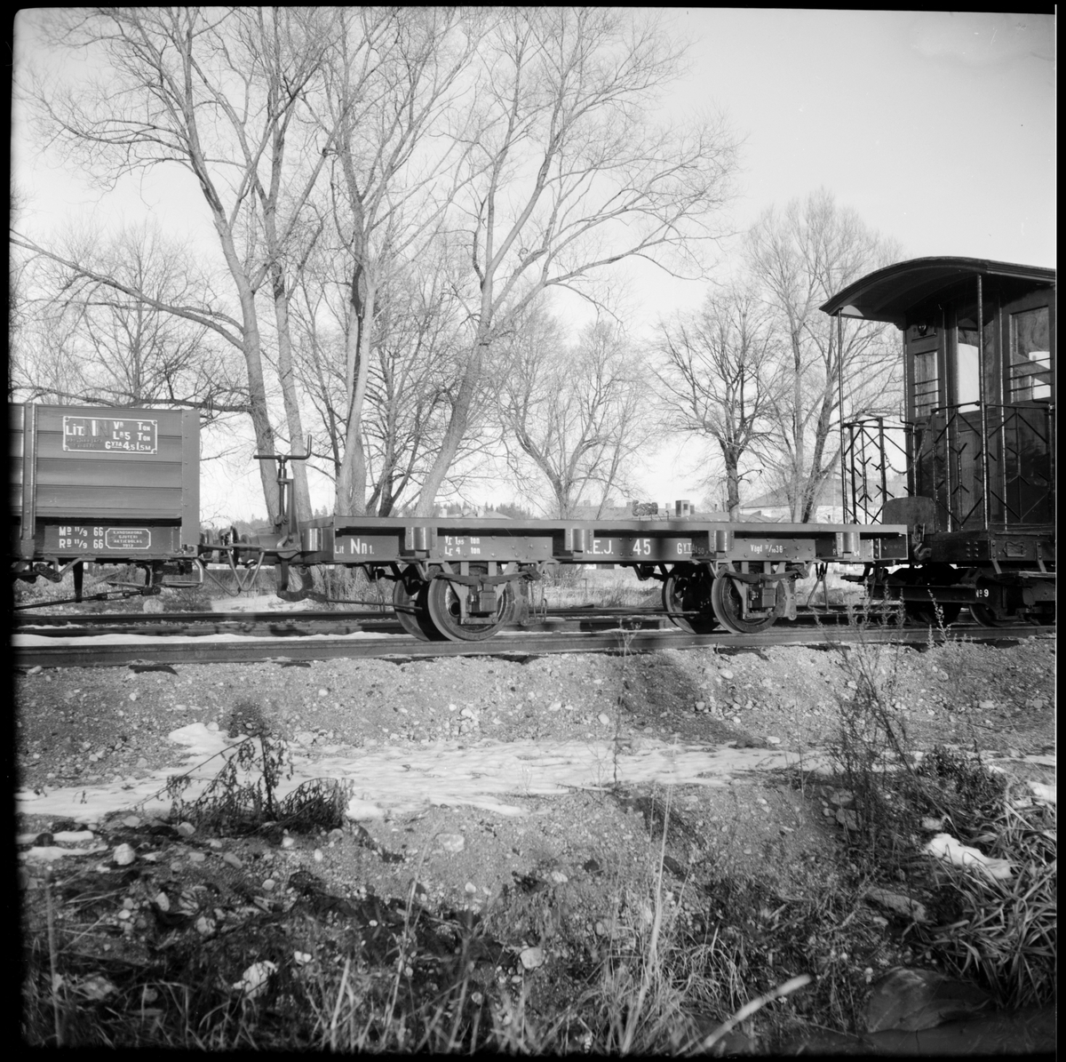 Godsvagnar på Museijärnvägen Östra Södermanlands Järnväg, ÖSlJ stationsområde. Till vänster littera I i mitten littera Nn1 och nummer 45 med okänt bolag, kan vara NAEJ, Nättraby - Alnaryd - Älmeboda Järnväg. Längst till höger, personvagn med nummer 9.