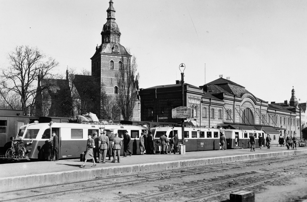 Titel: Kristianstad Central Våren 1944 ev. hösten -43. Rälsbusståg mot Hästveda.