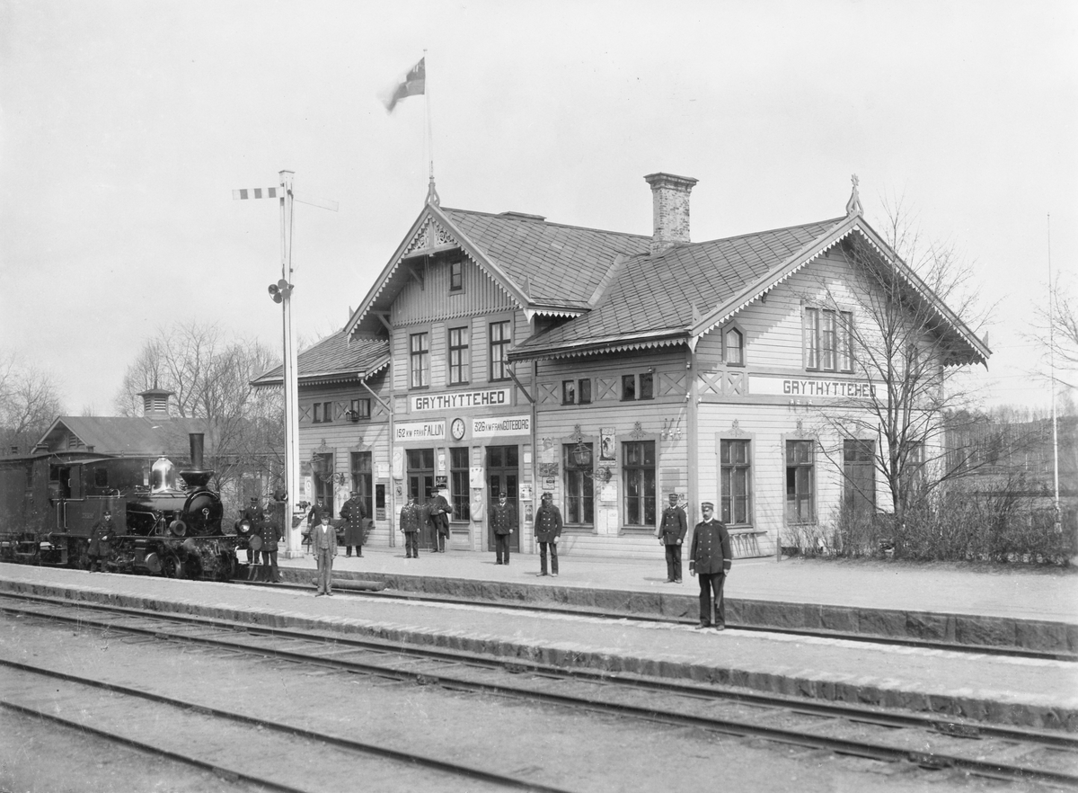 Svartälvs Järnväg, SEJ lok 1 "Elvestorp" vid Grythyttehed station, stationen bytte namn till Grythyttan 1932.