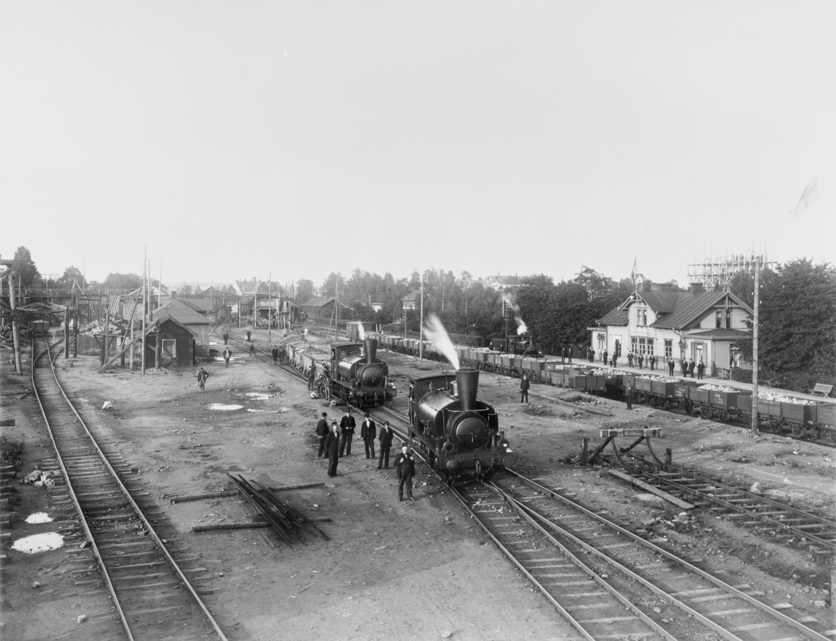 Bangården i Grängesberg med personal, malmtransport och stationshus.