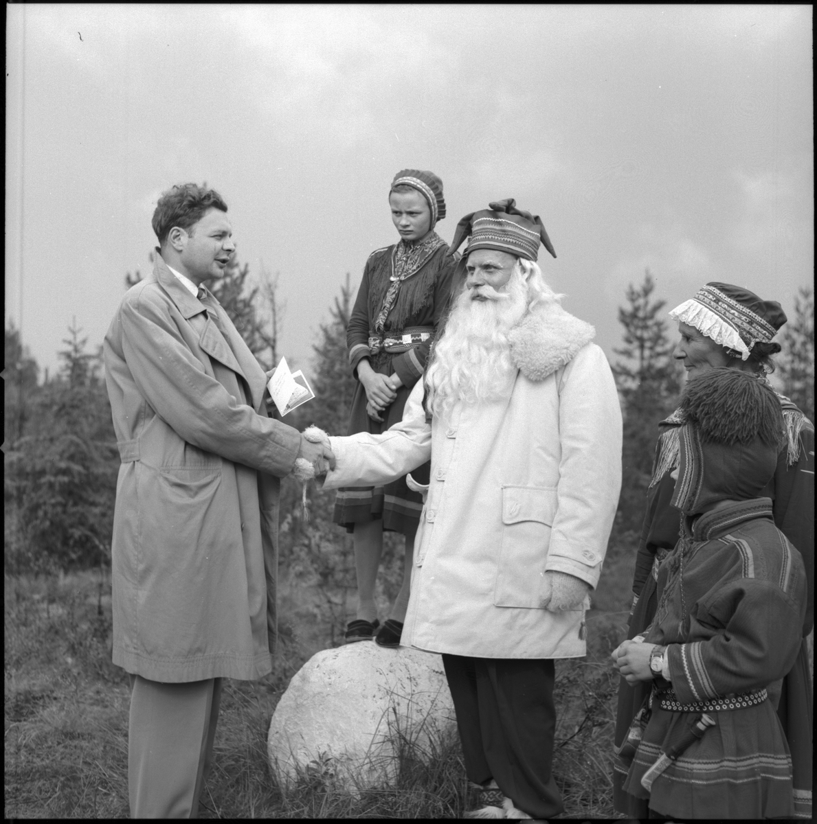 Polcirkeln, kung Bore, Sunlit Nights Land Cruises (SNLC) - värdinna, samer. Turist hälsar på tomten.