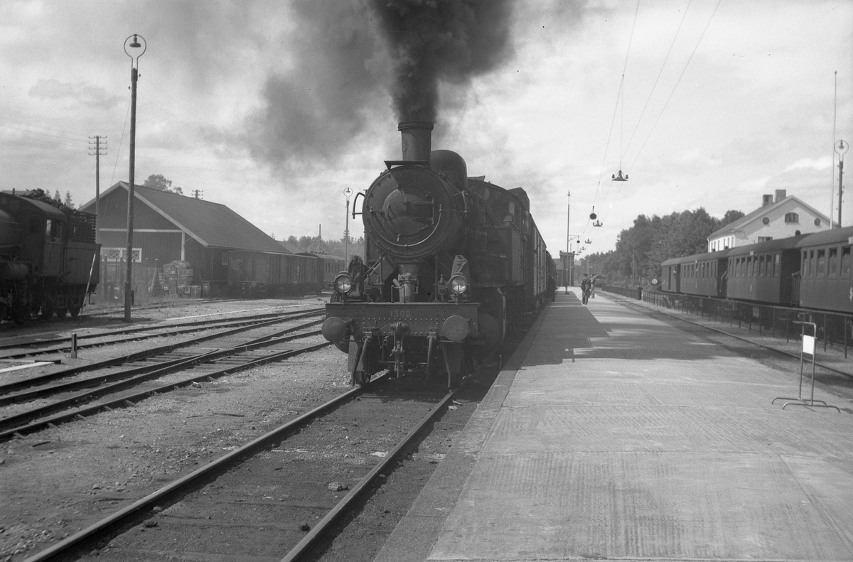 Statens Järnvägar, SJ S2 1308. Till vänster skymtar ett vedeldat B-lok.