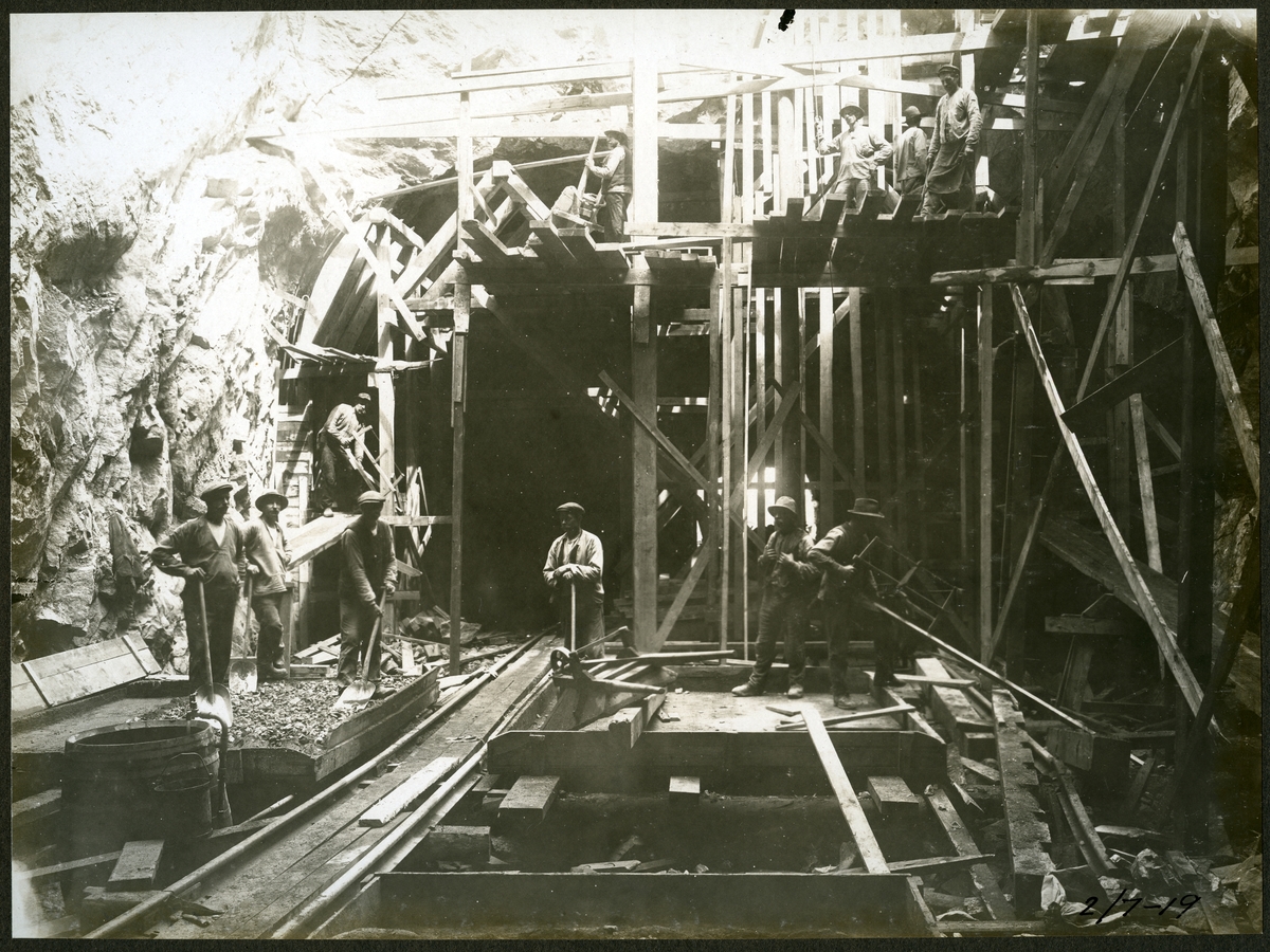 Strömgärdena Rönninge Ström. Torrsättning för förstärkningsvalv i Strömtunneln .Tunnelbygge vid dubbelspåret över kanalen mellan Rönninge - Ström.