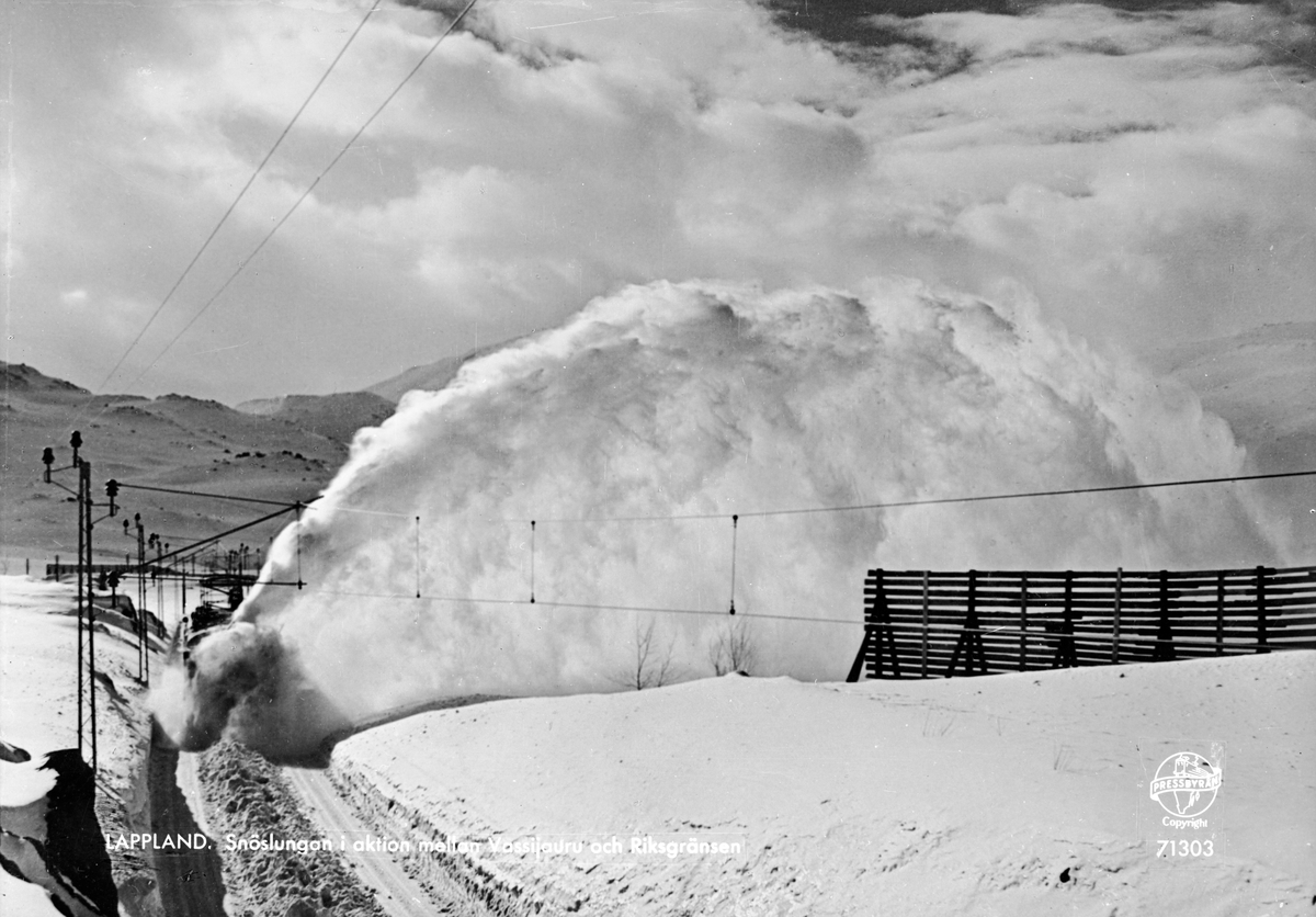 Titel: Snöslunga i aktion mellan Vassijaure och Riksgränsen.