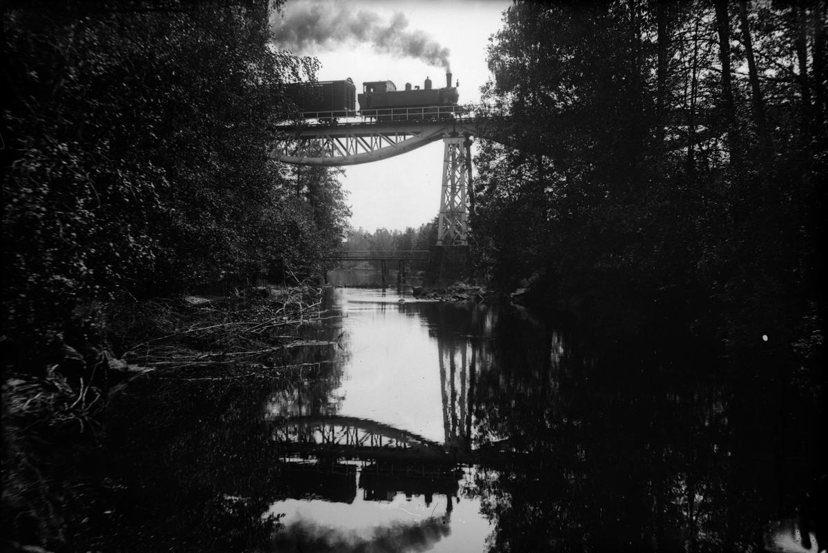 Nora - Bergslags Järnväg, NBJ, godståg på bron över Järleån.