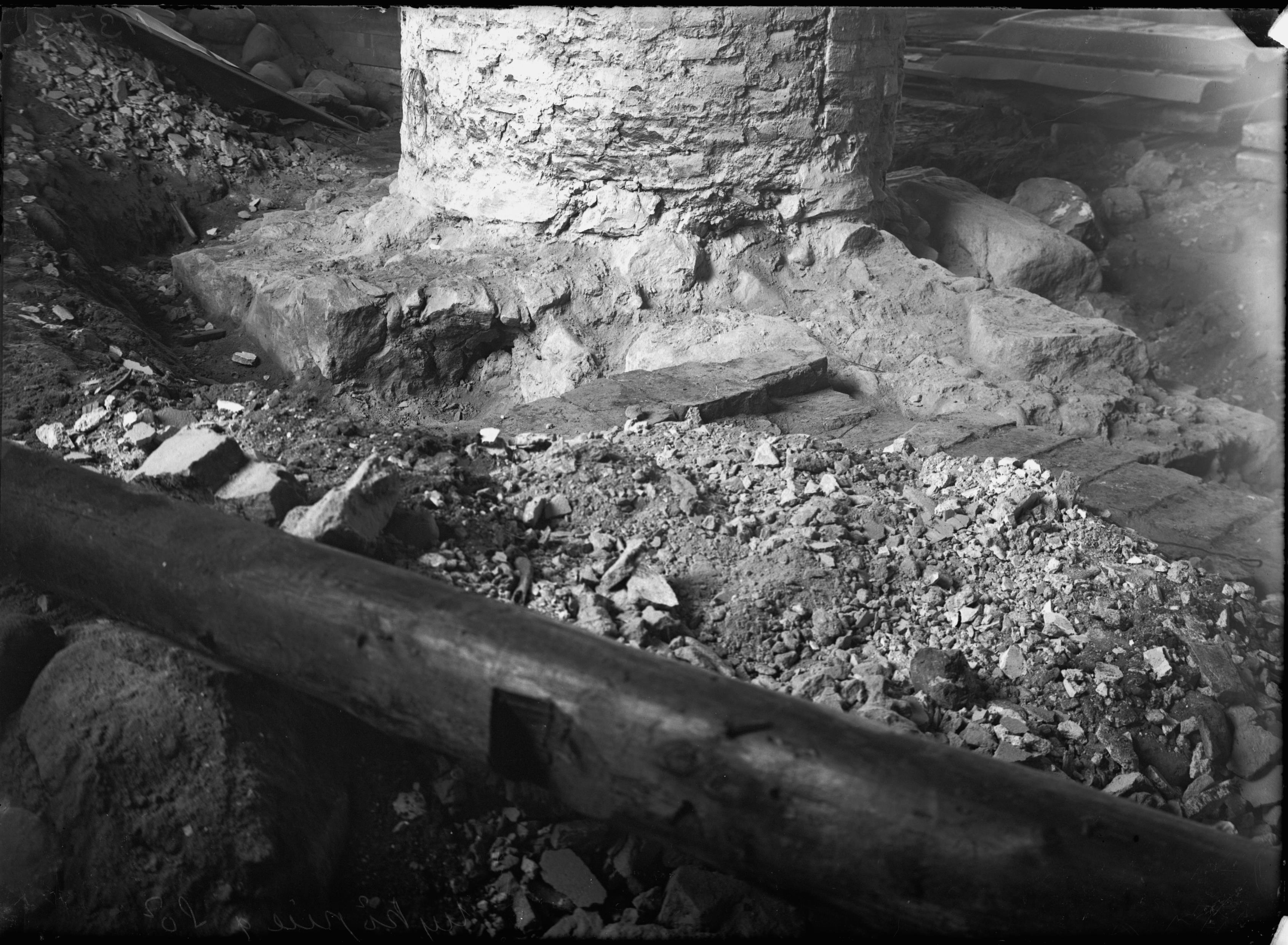 Nordvästra rundpelaren och det ursprungliga korets nordöstra hörn.