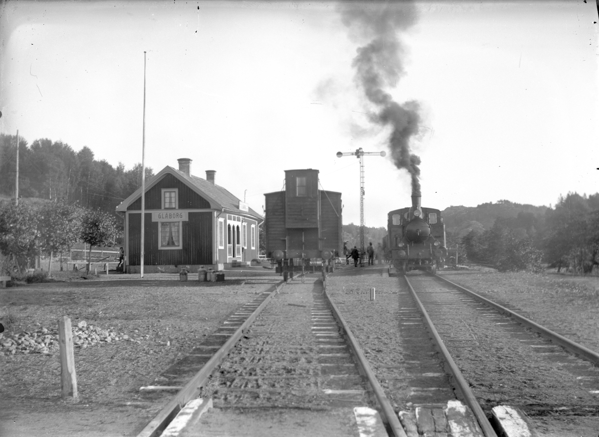 Godsvagn med bromshytt vid Gläborg station.