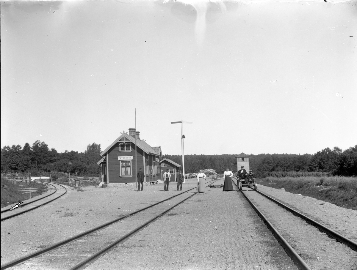 Titel: T semafor Hållplats anlagd 1898. Liten envånings stationsbyggnad i trä