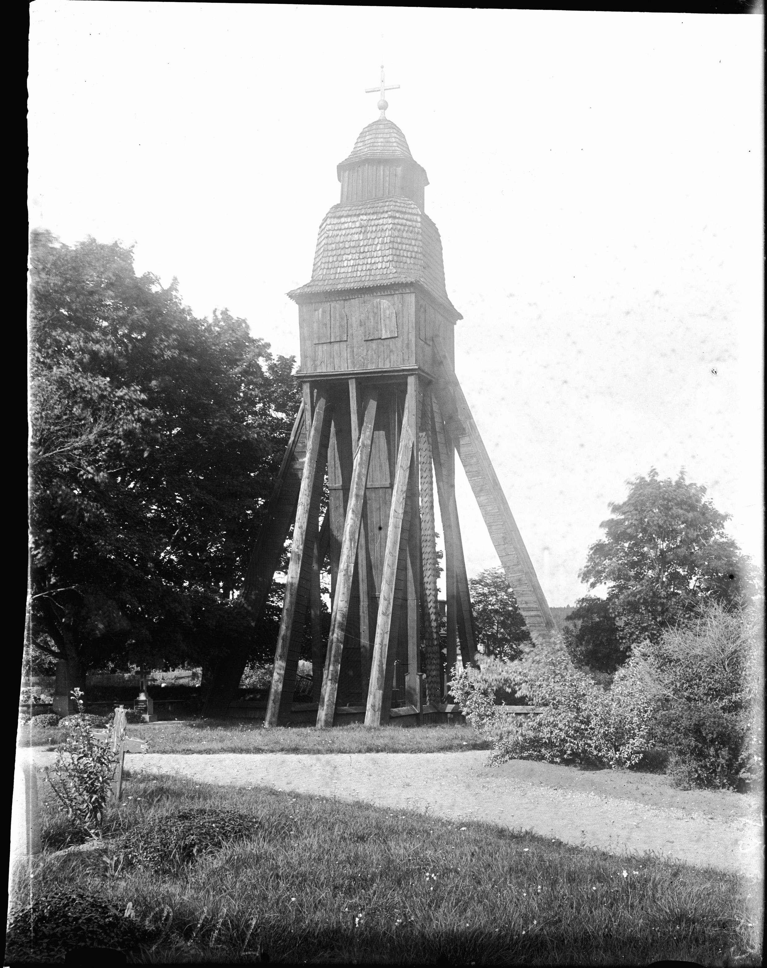 Kyrkans klockstapel.