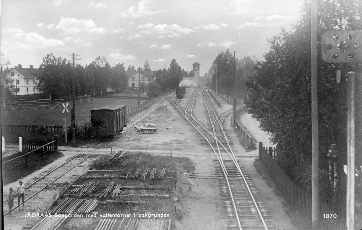 Bangården med vattentornet i bakgrunden, Jädraås.