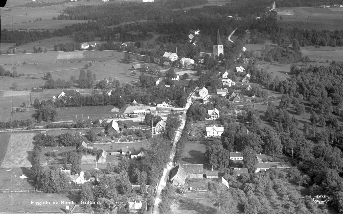Titel: Flygfoto över Sanda station med omnejd.