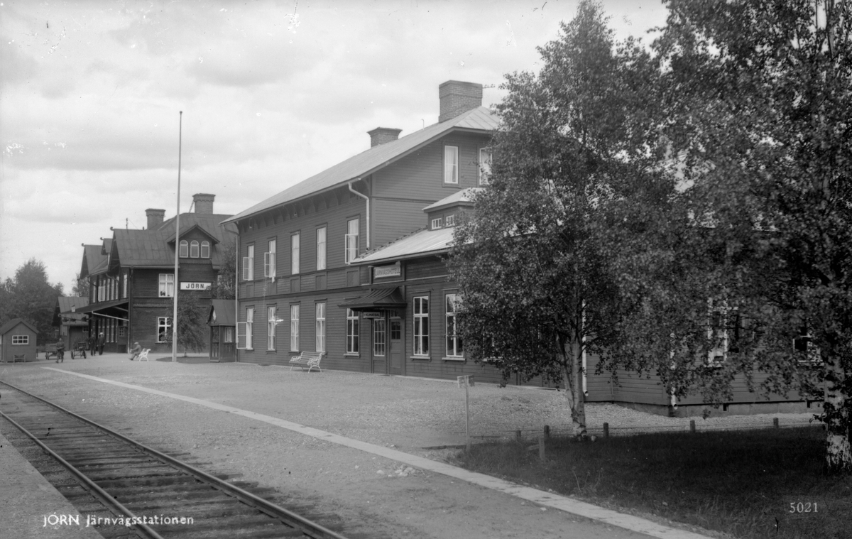 Jörn station. Närmast i bild ligger järnvägshotellet, bortom det syns stationshuset.