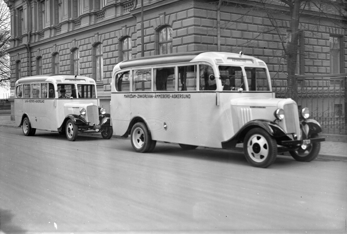 18 personers Chevroletbussar för Laxå - Rörfors - Askersund, samt Mariedam - Zinkgruvan - Åmmeberg - Askersund. Karossen tillverkad av Aktiebolaget Svenska Järnvägsverkstäderna, ASJ. Leveransfoto.