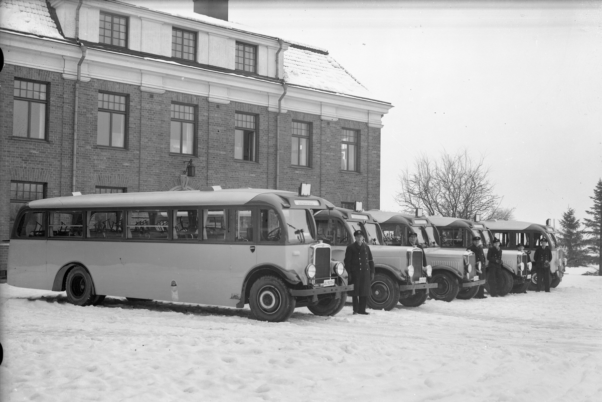 AEC och Scaniabussar för Brännkyrka - Södertörn. Karossen tillverkad av Aktiebolaget Svenska Järnvägsverkstäderna, ASJ. Leveransfoto.